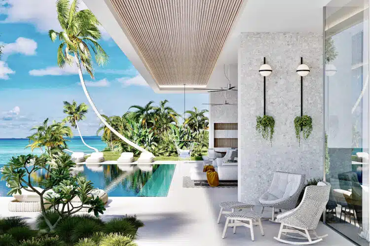 The inspiration for the interior design comes from the colours of the island itself – fresh, light and bright with splashes of bold colours. Colours from the outside environment have been bought into the home – the colours of the sea, from the pink sands to bleached driftwood to sparkling turquoise waters. The homes are full of art – not just hanging on the walls – but in the designer furniture and exquisite materials.