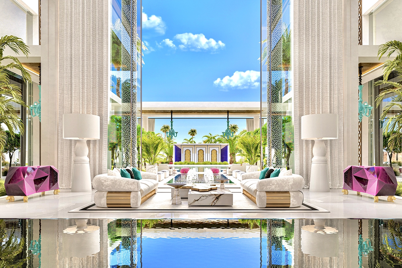 If architecture and interior design is to be truly defined as an art form, this is it – our stunning new palace in Saudi Arabia. Our goal was to create a large-scale private residence that would have elements of a luxury hotel, an art gallery and a family home. A place that was functional and comfortable at the same time, ideal for family living and for entertaining.